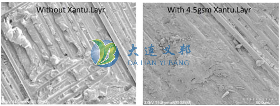含有和不含有納米纖維膜的實驗樣品的斷口形態(tài)如上圖所示