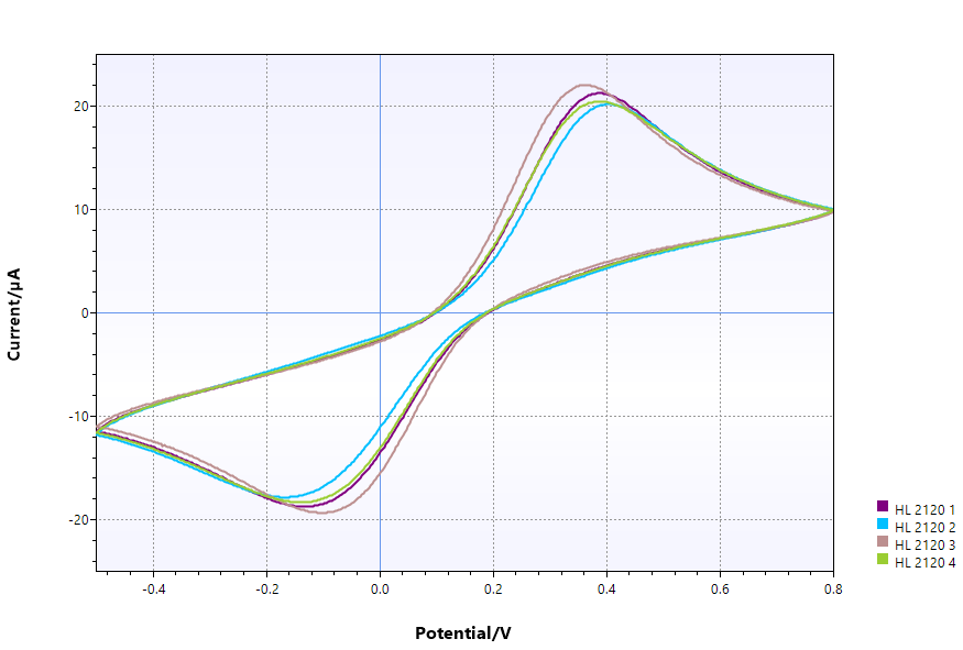 在最近的測(cè)試中,使用Haydale導(dǎo)電油墨在PET材料上按標(biāo)準(zhǔn)生物傳感器90-40目@45°進(jìn)行打印,結(jié)果顯示了四個(gè)傳感器的優(yōu)異性能。這些傳感器不僅響應(yīng)時(shí)間快、信號(hào)穩(wěn)定,而且重復(fù)性好,完全滿足了動(dòng)態(tài)血糖監(jiān)測(cè)的嚴(yán)格要求。油墨的流動(dòng)性和干燥特性在打印過(guò)程中表現(xiàn)出色,保證了生產(chǎn)過(guò)程的高效性和試紙的一致性,這對(duì)于動(dòng)態(tài)血糖監(jiān)測(cè)系統(tǒng)的性能和可靠性至關(guān)重要。